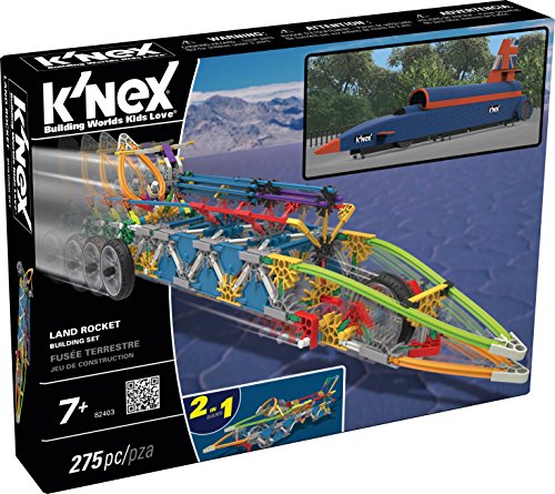 -. Binding : Toy -. Brand : K'Nex -. Color : Multi -. EAN : 0744476824035 -. Feature : Includes 275 parts / Ergonomic body style and visible moving parts / Just push it and watch it come to life / Includes 2nd building idea / Perfect for builders ages 7+ -. IsAdultProduct : 0 -. ItemPartNumber : 82403 -. Label : K'NEX -. Manufacturer : K'NEX -. Model : 82403 -. MPN : 82403 -. PackageQuantity : 1 -. PartNumber : 82403 -. ProductGroup : Toy -. ProductTypeName : TOYS_AND_GAMES -. Publisher : K'NEX -. ReleaseDate : 2015-07-01 -. Studio : K'NEX -. Title : K'NEX Land Rocket Building Set -. UPC : 796890177372 -. Warranty : Lifetime warranty against manufacturer's defects