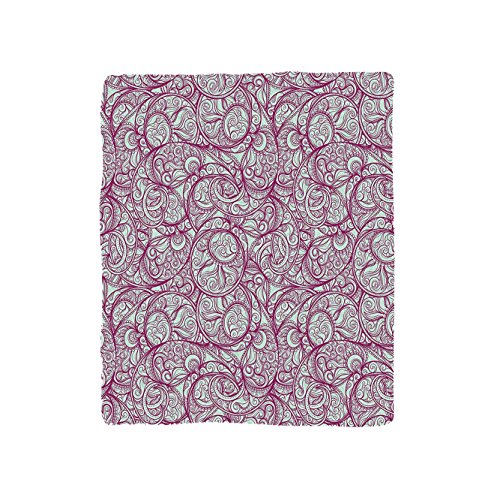 (VROSELV)/Bedding Bath/Bedding/DIRECT FROM USA/VROSELV Custom Blanket Purple Collection Bohemian Style Paisley Leaf with Curly Petal Veins Lac...