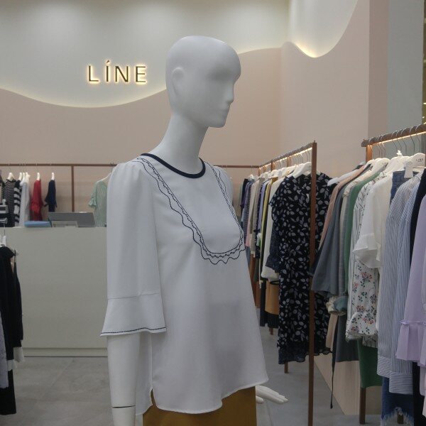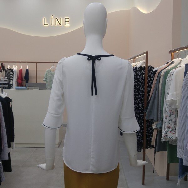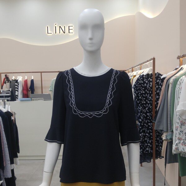 자수장식 포인트가 여성스러우며, 바이어스처리 ?선처리가 깔끔한 5부소매 블라우스입니다.