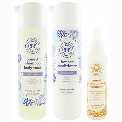 VARIETY PACK: The Honest Company Dreamy Lavender -Shampoo + Body Wash (10 oz) & Conditioner (10 oz) + Sweet Orange Vanilla Conditioning Detangler (4 oz)