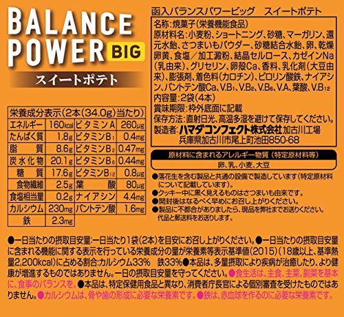 原材料:小麦粉、ショートニング、砂糖、マーガリン、還元水飴、さつまいもパウダー、砂糖結合水飴、卵、乾燥卵黄、食塩/加工澱粉、結晶セルロース、カゼインNa(乳由来)、グリセリン、卵殻Ca、香料、乳化剤(大豆由来)、膨張剤、着色料(カロチン)、ピロリン酸鉄、ナイアシン、パントテン酸Ca、V.B1、V.B2、V.B6、V.A、葉酸、V.B12