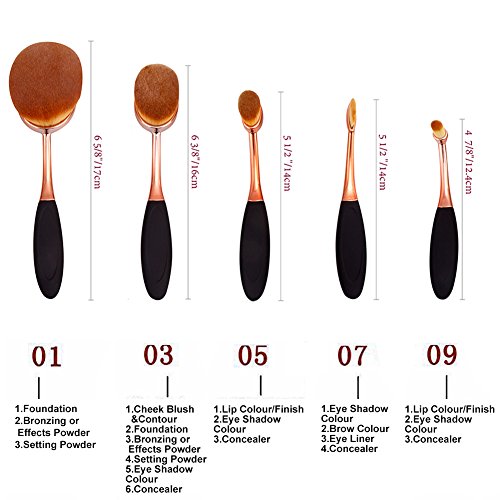 DSCbeauty Professional 5 Pcs Oval Makeup Brush Set Foundation Contour Blush Blending Lip Eyebrow Eyeliner Eyeshadow Concealer Toothbrush Makeup...