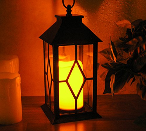 - FLAMELESS CANDLE AND BLACK LANTERN. Requires 3AAA batteries (NOT INCLUDED). The LED candle has a nice, soft, warm flickering glow. Since the candles are flameless they are smoke free and worry free. Safe to use around pets and children. Perfect for those night sitting out on the deck, by the beach or at the lake. Each lantern comes with a loop at the top so you can hang it anywhere.