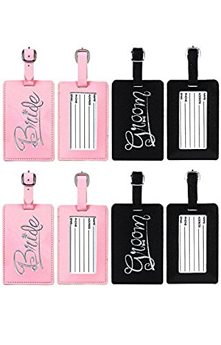 Amscan Just Married Luggage Tags Bridal Shower Party Novelty Favors, 4-1/4 x 2-3/4", Black/Pink