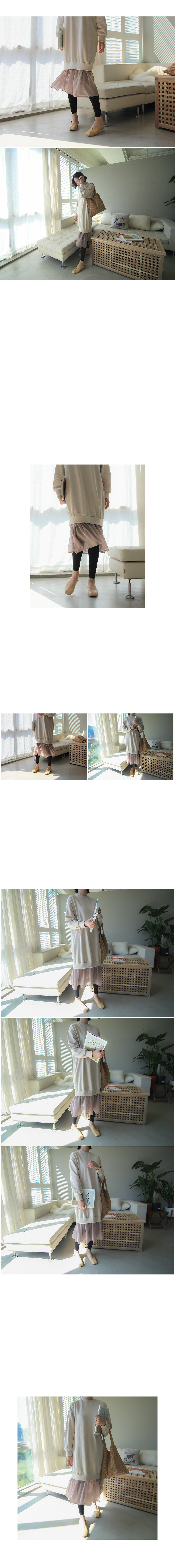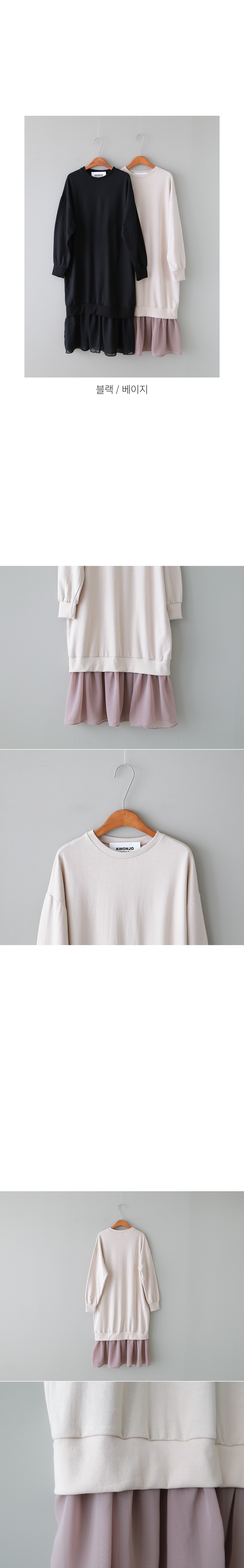 어떻게 하다보니깐 또 저는 베이지를 피팅하게 되었네요 ^^; 그럴수 밖에 없었어요 블랙은 그냥 원톤이라 그냥 봐도 예쁘니까요, 제가 피팅한 베이지 컬러는 밑단에 시폰컬러가 너무 여성스러운거에요!! : ) 이건 입어봐야해요. 이옷은 그냥 머리 질끈 묶고 무심하게 입어주면 정말 얌전하고 단정하면서 우리나이에 딱이에요 ㅋ 맨투맨에 시폰을 덧대어 마치 두가지 옷을 레이어드 한것처럼 느껴지는데 원단이 답답하게 두꺼운 원단을 쓰지 않았기 때문에 아주 가벼워요. 루즈핏의 원피스형 맨투맨은 부해보이는 단점이 있었지만 이 아이는 그렇지 않네요. 그냥 지금 두께감 딱 좋고요, 조금 더 쌀쌀해지면 레깅스랑 아우터 걸쳐주시면 좋을것 같아요 ^^