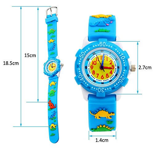 -. Feature : POWER BATTERY: Japanese Movement, provide precise and accurate time keeping. Japanese battery which can provide the watch strong power. Different from other similar cheap watches. / WATERPROOF: 30M Water Resistant, Daily Use Waterproof.Water resistant to 30 m (99 ft): In general, withstands splashes or brief immersion in water, but not suitable for swimming. NOTE: Please DO NOT press any buttons in the water or wear this watch for longtime underwater activities - such as diving, ect. Too much water contact or usage in extreme Hot or Cold temperature will shorter watch life. / SHOCK RESISTANT: The Excellent Metal Steel case and Stainless Steel case back which enable the watch to be tough and durable. The glass is made from the highly clear resin material imported abroad and sealed with the case by high frequency machine. So that the glass is extremely hard and pressure-tolerant. / COMFORTABLE & UNIQUE DESIGN: High quality silicone strap, It uses healthy environmental protection material,comfortable and environmental friendly through international CE certification. With 3D cartoon design, every watch has their unique style. Each cartoon image is lively and interesting. / Recommended for young Kids 3-10 years old. Big Glass dial window diameter 2.7CM (1.06Inch). Suitable for 14-16CM ( 5.5-6.29 inch) in circumference wrists to wear.This is a very cute and useful gift. We are committed to providing the best products and services to our customers. If you have any questions, please contact us in time. We will try our best to make you satisfied.Thank you !