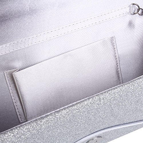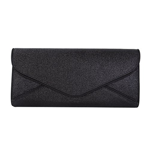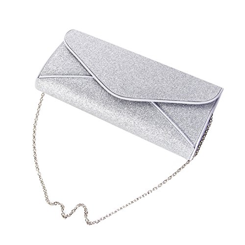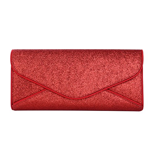 This high quality large evening clutch is both simple and stylish. Envelope style, metallic color with sparkling accents to create the unique party look. Fully lined with magnetic-flap closure and inner wall pocket. Removable hideaway shoulder chain strap with 21" drop. Roomy and functional, stunning and versatile. The size is 11" (L) x 5.25" (H) x 2" (W). Elegant design and luxury feel. A must have accessory for the perfect night out.Feature