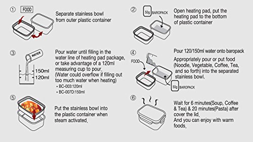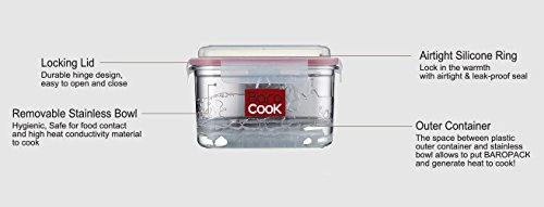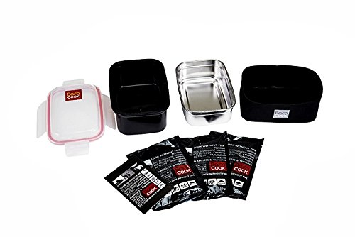 Cook a meal anytime, anywhere! The Barocook Flameless System is a revolutionary stove for anyone; office workers, frequent traveler, camper, survivalists or outdoor enthusiasts. No matter where you are going, bring this stove along to always have a hot meal. With the supplied heat packs, you can carry, cook and warm your food easily. Just place the heat pack and water into the outer container and then place the inner steel container inside and the steam will heat your food. When the food is heated, open the lid and enjoy your hot meal.