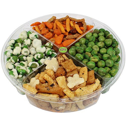 - Party Platter Includes: Rice Crackers, Wasabi Peas, Fried Green Peas & Hot Cajun Party Mix.