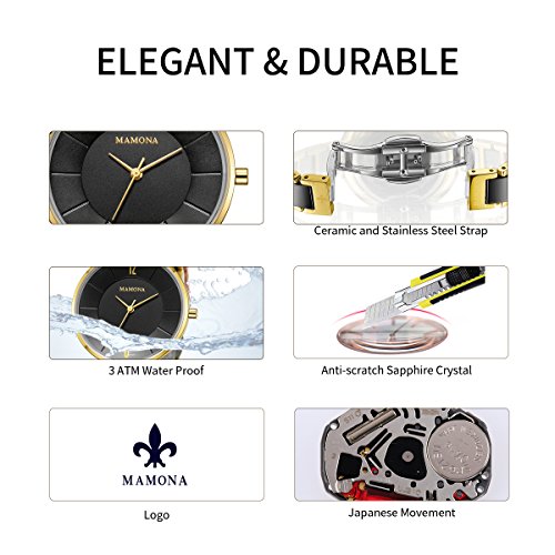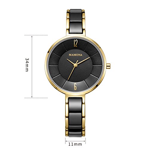 -. Title : MAMONAレディース腕時計&ブレスレットギフトセットレディースステンレススチール/セラミックウォッチブラックL3887BKGT