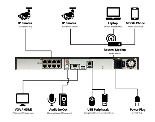 Offers true Plug and Play with a built-in Poe. Simply connect the IP camera to a Cat5 cable, connect it to your NVR and your system should automatically detect the camera that's ready to view