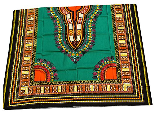 RaanPahMuang African Dashiki Colour Cotton Fabric Suitable for 1 Shirt Design, Green