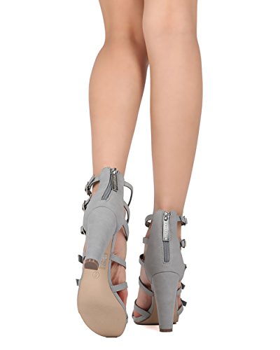 Product Description These leatherette sandals are made with an open toe, strappy construction and adjustable buckles throughout. Also made with a single sole, chunky heel and hind zip for easy slip on and off. 0