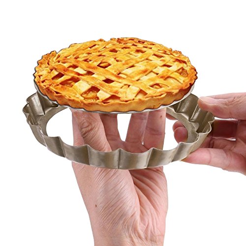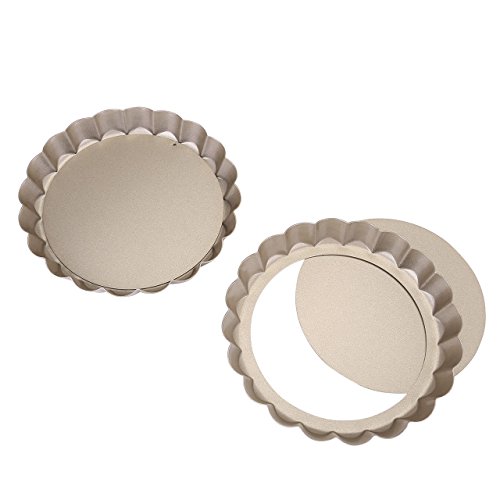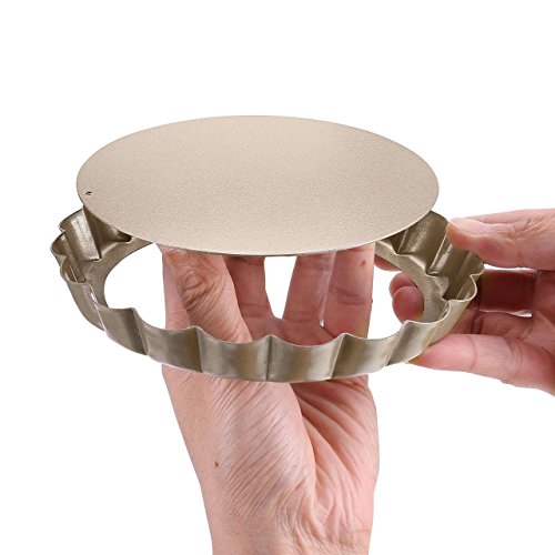 Studio : WarmHut Publisher : WarmHut Product Description About the product: Package includes: 2 x 6 inches non-stick tart pie pan. Material Type:Heavy Weight Carbon Steel. Weight: 6.17 Ounces Designed specifically, our exclusive premium non-stick coating which provides quick, easy release of baked goods. 6 inches quiche pan with removable bottom for easy access means fruit tarts or desserts come out intact. The fluted sides increase the surface area, which in turn creates a strong crust capable of holding and containing the heavy ingredients of a quiche or a fruit tart. Perfect results pans feel noticeably heavier than most comparable brands, assuring that they will heat evenly for years of baking perfection. Easy clean-up and dishwasher safe.