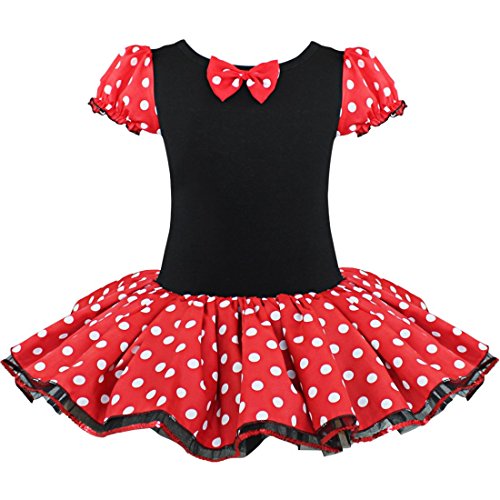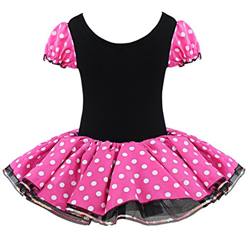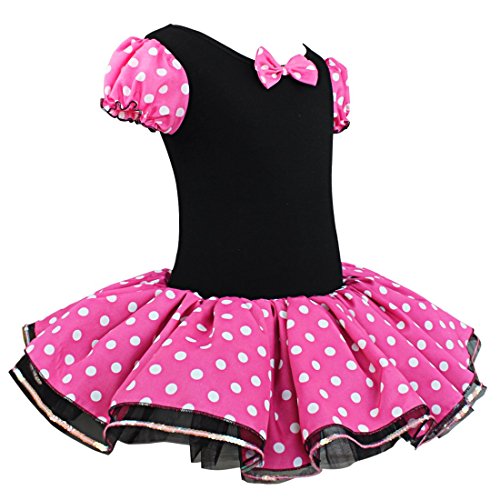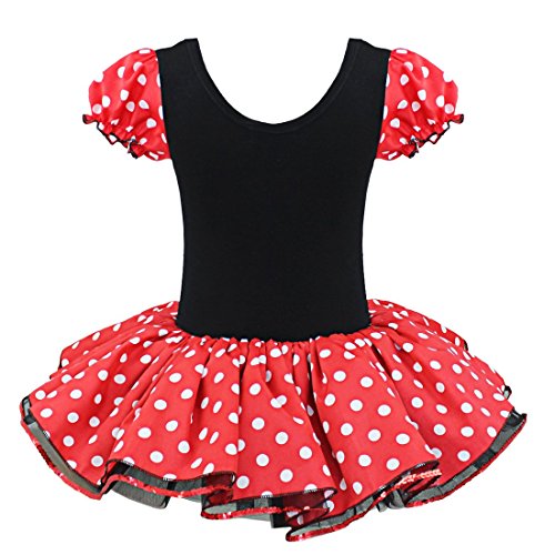 -. Feature : Material: Cotton, Polyester / Round neckline, short puff sleeve, super cute / Three layers of the black tulle with sequined trim / Adorable polka dots leotard dress (panties inside) / Great for birthday, party, Halloween or Christmas holiday
