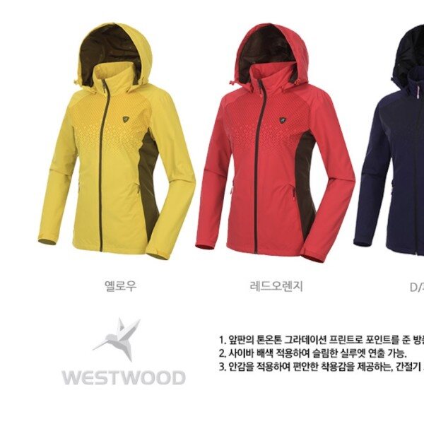 1. 앞판의 톤오톤 그라데이션으로 포인트를 준 방풍자켓2. 전체 은은한 프린트로 포인트를 줌.3. 등판 상단 벤틸레이션 기능으로 통기성 강화.