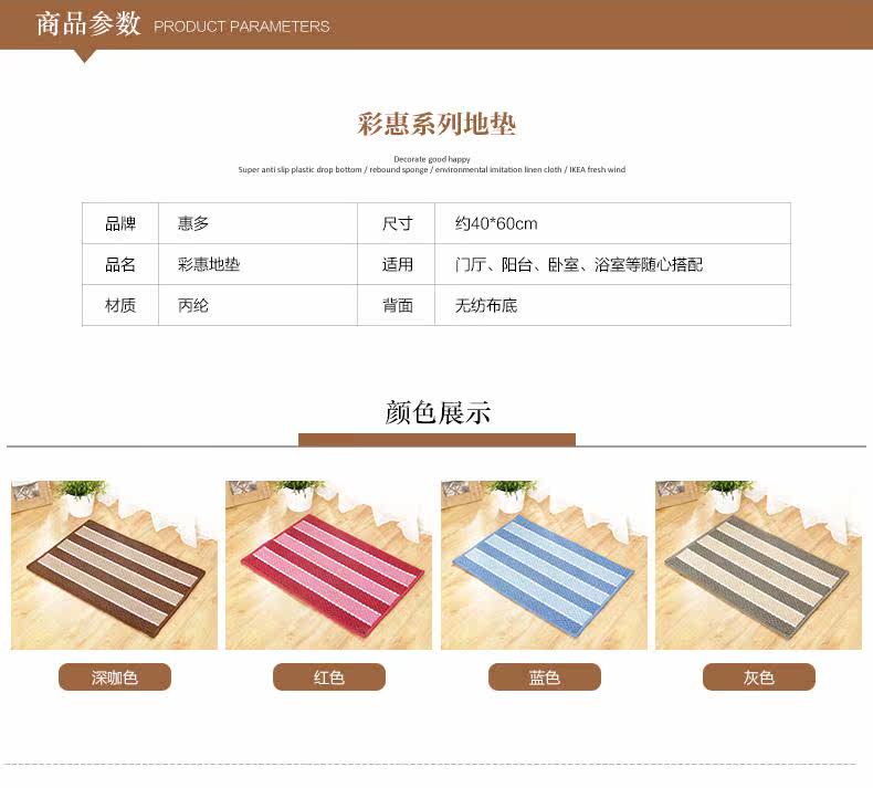 欧式条纹地垫门垫 进门入户脚垫 厨房卧室卫生间吸水防滑地毯垫子