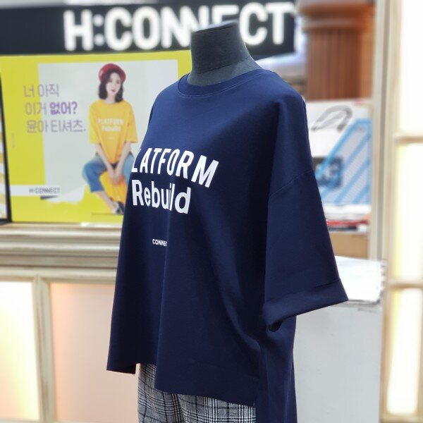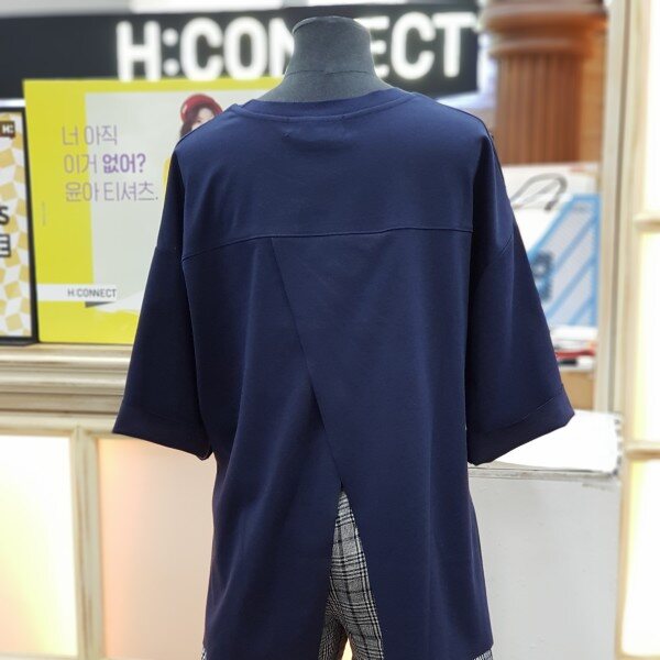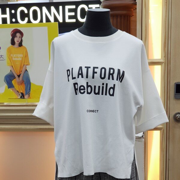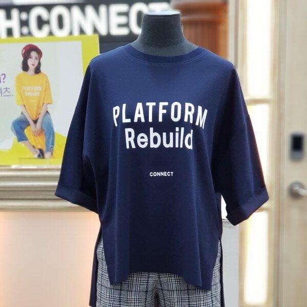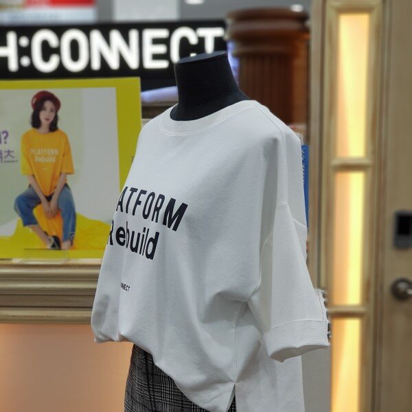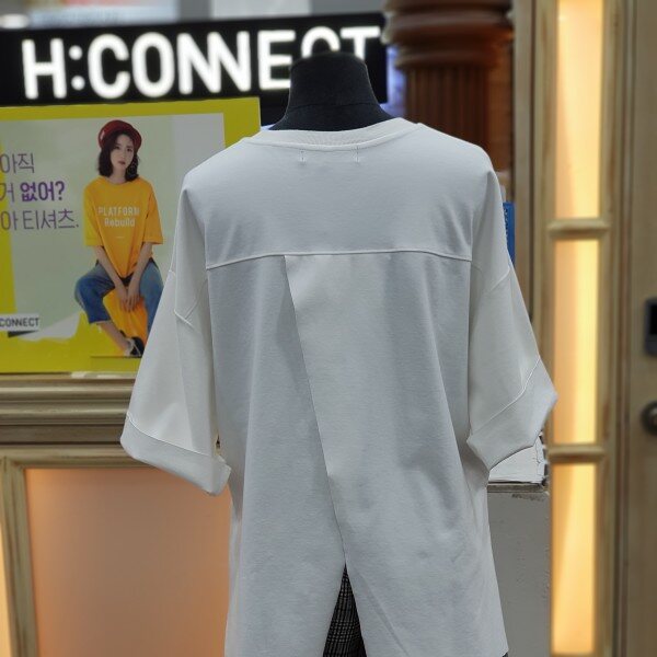 뒷태에 슬릿으로 포인트를 준 레터링 라운드 티셔츠입니다.유니크한 스타일로 다양한 룩에 스타일링 하기 좋은 아이템입니다.