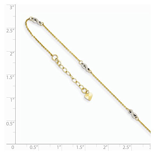 14K Two-tone Cable Chain w/Rope Chain w/ 1in Ext Anklet. Material: Primary - Purity:14K|Finish:Polished|Chain Length:9 in|Chain Type:Rope|Chain Width:1 mm|Charm/Element Length:3 mm|Charm/Element Width:6 mm|Clasp /Connector:Spring Ring|Extender Length:1 in|Feature:Adjustable|Manufacturing Process:Hand Made|Material: Primary:Gold|Product Type:Jewelry|Jewelry Type:Anklets|Sold By Unit:Each|Anklet Type:Anklets with Stations|Texture:Diamond-cut|Material: Primary - Color:Two-Tone|Feature 2:SolidFeature