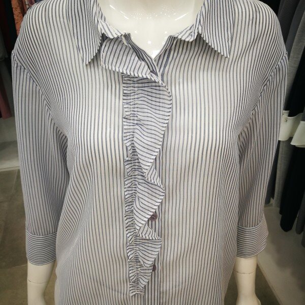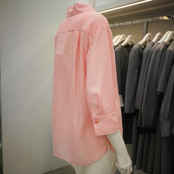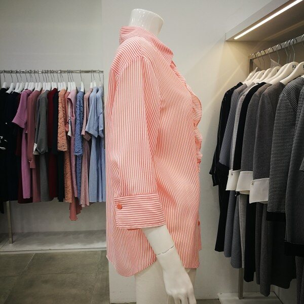 시원한 소재의 스트라이프 프릴 셔츠입니다. 이 셔츠는 청바지, 면바지, 정장바지 할 것 없이 잘어울리는 탑입니다!소매통이 넓어서 팔이 훨씬 가늘어 보여요! 블루색상은 무난하게 어디든 잘 어울리게 나왔고 오렌지색상은 정말 상큼한 색상으로 나와서 입으시면 더 발랄해보입니다!