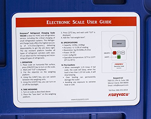 220lbs Digital Electronic Refrigerant Charging Weight Scales for HVAC and Auto AC Refrigerant Recovery Processing with Backlighting LCD display, free 9V battery and a Portable Carrying Case