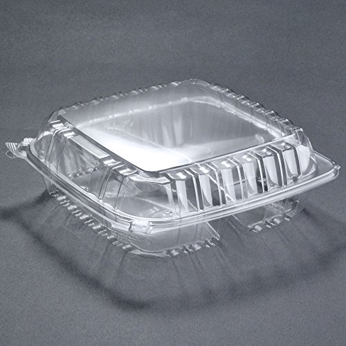 Pack of 100 Large Clear Plastic Hinged Food Container 9x9 for Sandwich Salad Dessert Pastry
