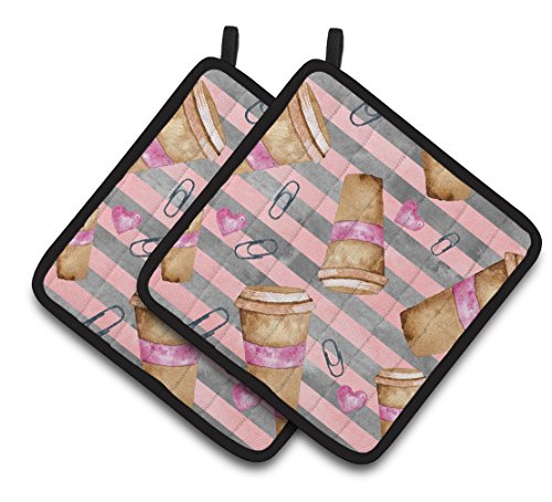 Caroline's Treasures BB7538PTHD Watercolor Coffee and Paper Clips Decorated Pot Holder, 7.5" x 7.5", Multicolor