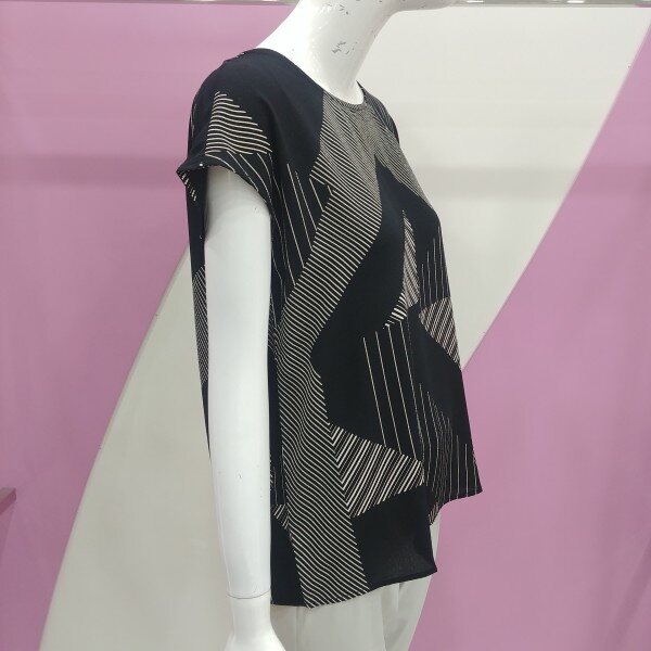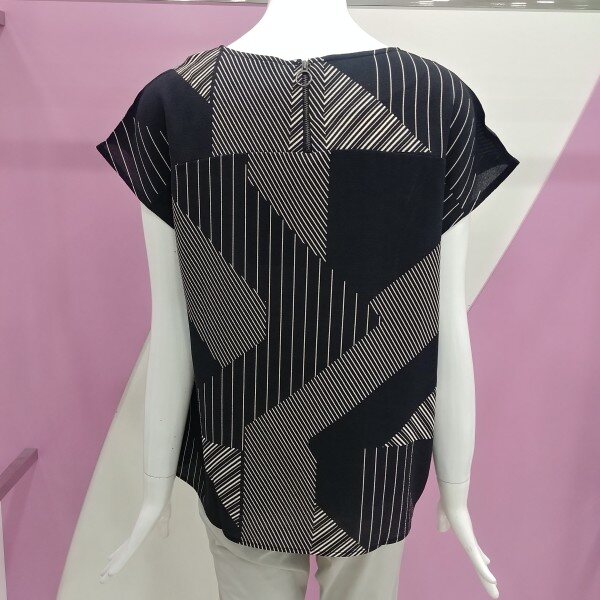 패턴이 멋스럽게 표현된 블라우스.뒤에 지퍼로 포인트를 준 세련된 스타일의 블라우스.정사이즈 구매.