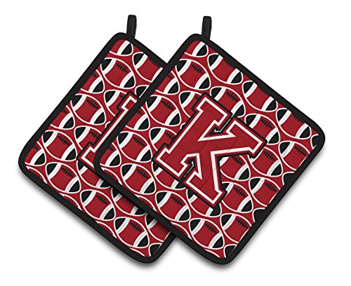 Caroline's Treasures Letter K Football Red, black & White Pair of Pot Holders CJ1073-KPTHD, 7.5HX7.5W, Multicolor