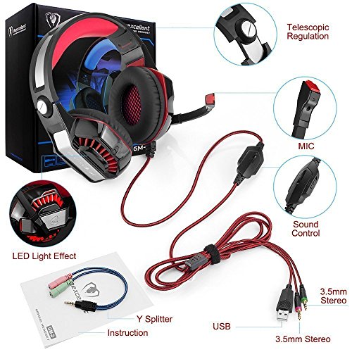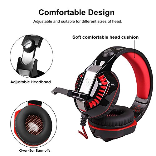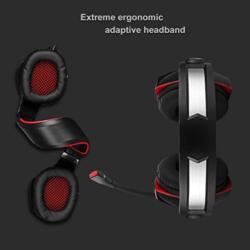 ERGONOMIC DESIGN: With soft over-ear pads and adjustable ergonomic steel slider ensure your comfort experience. The funky LED lights on the ear-cups highlights any gaming atmosphere!