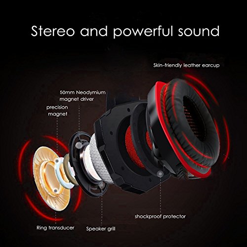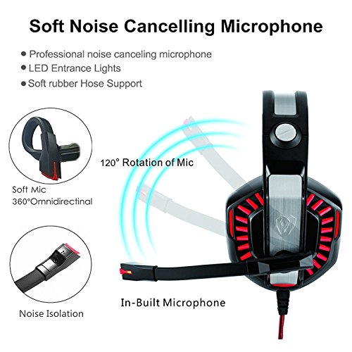 HIGH QUALITY SOUND: The bass gaming headset with high precision 50mm driver, 360 degree stereo sound, ideal for online video gaming movie, music. Omnidirectional noise isolation mic can be revolved 120° downward/upward and can be bent to close your mouth, conducting pickup on the right/left/ backward/forward. Even if you don't speak directly to the microphone of the over ear headphones, your friends can hear you clearly.