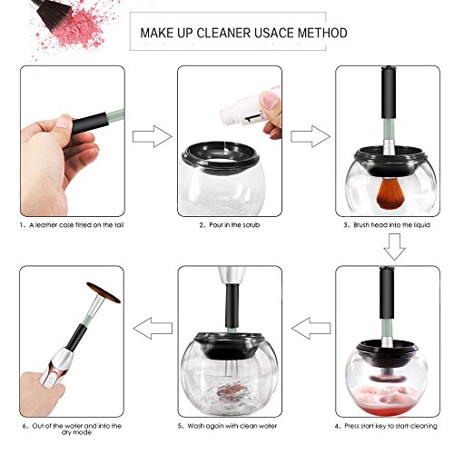 Makeup Brush Cleaner Kit in Seconds to Clean Makeup Brushes and Dry in 360 Rotation with 8 Rubber Collars for All Makeup Brushes Cleaning By Rejawece