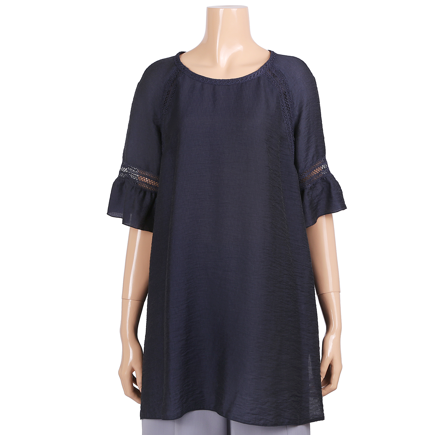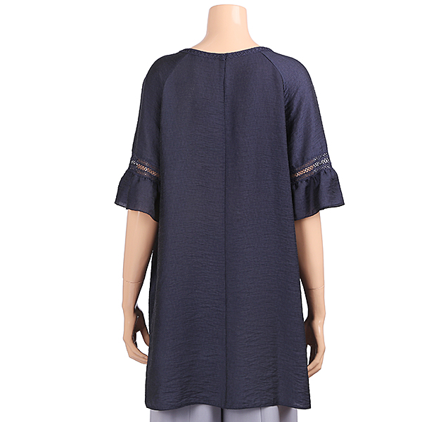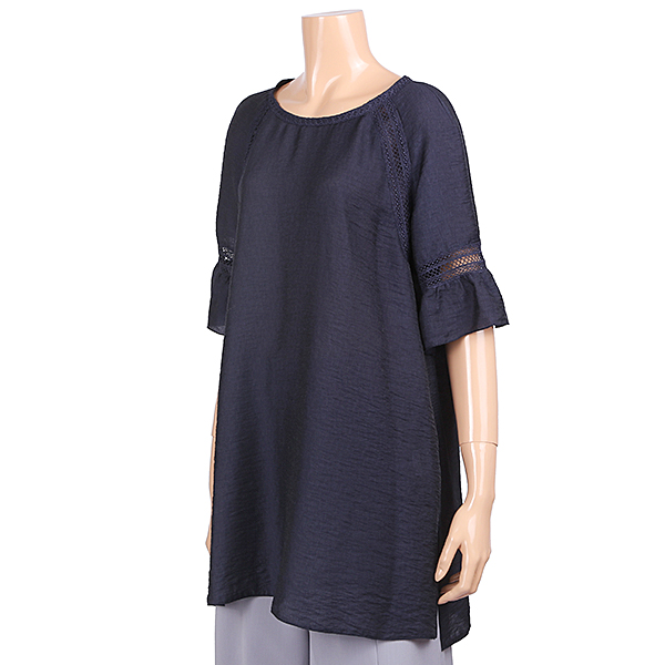 이 제품은 라운드목선의 단아하고 심플함과 나그랑어깨의 편안함에 6부기장의 소매에 벌륜소매로 매우 편안하며