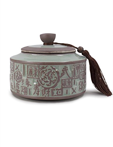 Dahlia Embossed Five Blessings Celadon Porcelain Loose Tea Tin/Tea Storage/ Tea Caddy/ Tea Canister