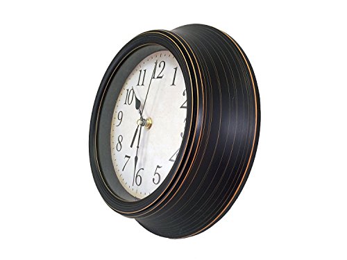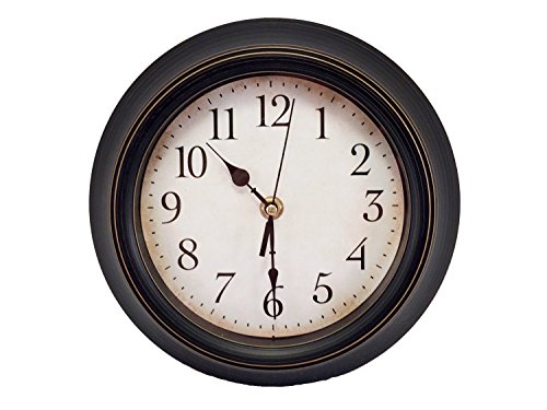 TukTek Antique Black Wall Clock with Glass Lens & Quartz Accuracy 9 Inches Round (Black, 9")