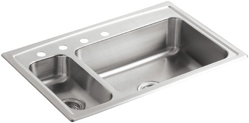 KOHLER K-3347L-4-NA Toccata High/Low Self-Rimming Kitchen Sink, Stainless Steel