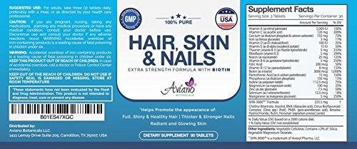 -. Binding : Health and Beauty -. Brand : Aviano Botanicals -. EAN : 0659193183542 -. Feature : HAVING TROUBLE WITH HAIR GROWTH? This Biotin Multivitamin supplement is packed with about 30 powerful ingredients to help support healthy hair regrowth in both men and women.* / POTENT FORMULA: We have hand picked ingredients which people are traditionally deficient in and help with having soft & glowing skin, strong & long nails and great full looking hair.* / PHARMACEUTICAL GRADE: At Aviano Botanicals, we insure that we use pharmaceutical grade and 100% pure ingredients in all our dietary vitamin supplements. / QUALITY ASSURED: Proudly made in the USA in a strict quality controlled GMP & FDA Certified Lab to insure the best supplement for your body. / 100% SATISFACTION GUARANTEE: If for any reason you are not satisfied with this supplement, we will give you a full refund! We stand behind all our quality supplements. -. IsAdultProduct : 0 -. Label : Aviano Botanicals -. Manufacturer : Aviano Botanicals -. MPN : AB -. PackageQuantity : 1 -. PartNumber : AB -. ProductGroup : Health and Beauty -. ProductTypeName : HEALTH_PERSONAL_CARE -. Publisher : Aviano Botanicals -. Studio : Aviano Botanicals -. Title : Biotin Multivitamin Complex: Vitamins for Hair Growth - Skin, Nails & Hair Loss Supplement for Men & Women - Supports Hair Regrowth by targeting Vitamin Deficiencies by Aviano Botanicals -. UPC : 659193183542