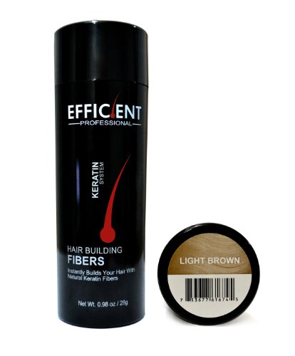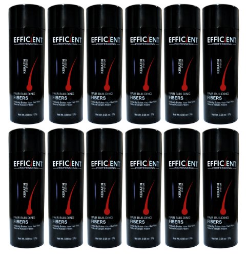 -. Binding : Misc. -. Brand : EFFICIENT -. Feature : 12 bottles of EFFICIENT Brand Keratin Hair Building Fibers Net Wt. 28g / 0.98oz per bottle / Make your hair look fuller and thicker just in seconds! / Immediately eradicates physical appearance of thinning hair and bald spots. / Made from pure organic and natural protein, the exact same protein your organic hair is made from. / Works perfectly for both men and women, has no side effects. -. NumberOfItems : 12 -. PackageQuantity : 12 -. ProductGroup : Beauty -. ProductTypeName : BEAUTY -. Title : 12 of EFFICIENT Keratin Hair Building Fibers, Hair Loss Concealer Net Wt. 28gm / 0.98 oz per bottle (1 YEAR SUPPLY)