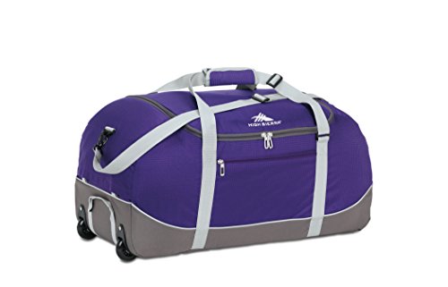 -. Binding : Accessory -. Brand : High Sierra -. ClothingSize : One Size -. Color : Deep Purple/Charcoal -. Department : unisex-adult -. EAN : 0040176433202 -. Feature : Large main compartment with zippered opening / Duffel stows away into its own useful drawstring sack / Comfortable padded handle wrap / Adjustable/detachable shoulder strap / Use it as a regular wheeled duffel or wear it like a backpack -. Label : High Sierra -. Manufacturer : High Sierra -. Model : 57236-4150 -. MPN : 57236-4150 -. NumberOfItems : 1 -. PackageQuantity : 1 -. PartNumber : 57236-4150 -. ProductGroup : Sports -. ProductTypeName : OUTDOOR_RECREATION_PRODUCT -. Publisher : High Sierra -. ReleaseDate : 2013-09-24 -. Size : 36-Inch -. Studio : High Sierra -. Title : High Sierra Wheeled Duffel Bag with Cinch Sack, Deep Purple/Charcoal, 36-Inch -. UPC : 040176433202