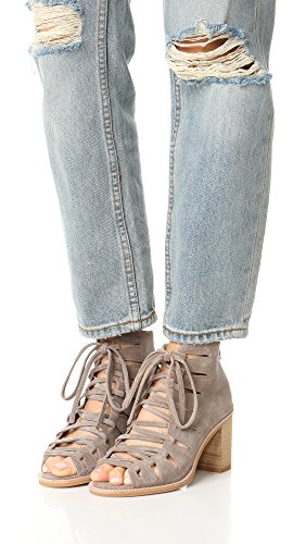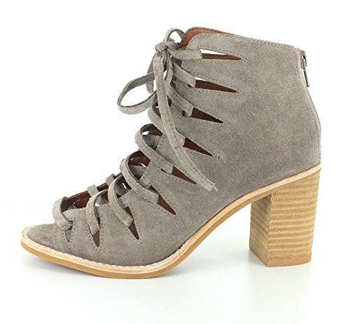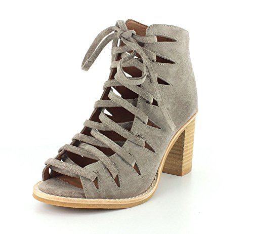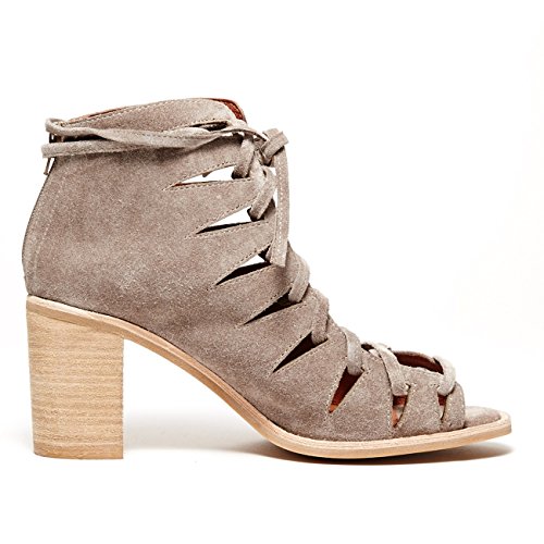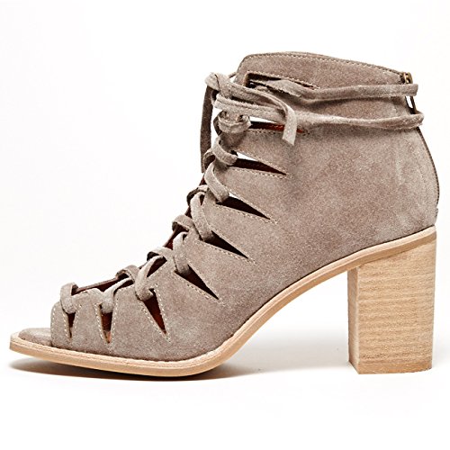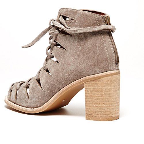 Product DescriptionLuxe suede Jeffrey Campbell booties in an open-toe profile. Geometric cutouts trim the lace-up closure. Exposed back zip and lightly padded footbed. Stacked heel. Rubber sole.0