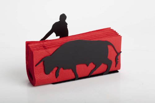 -. Binding : Kitchen -. Brand : ARTORI Design -. Color : black -. EAN : 7290013682055 -. Feature : Brave matador on one side and a raging bull on the other / Made from metal painted in black / Please note - napkins not included / H13.5 x L20 x W5cm / H5.3 x L7.9 x W2" , Weights about 200 gr / 7oz -. IsAutographed : 0 -. Label : Artori Design -. Manufacturer : Artori Design -. Model : AD150 -. MPN : 750.010 -. PackageQuantity : 1 -. PartNumber : 750.010 -. ProductGroup : Kitchen -. ProductTypeName : HOME -. Publisher : Artori Design -. Studio : Artori Design -. Title : AD150 - Red Napkin Holder - Black Metal Bull and Matador Decorative Tableware -. UPC : 793842697674