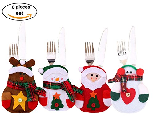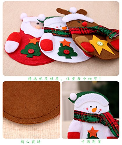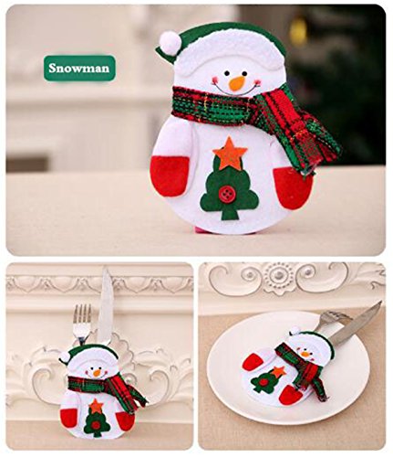 Adorable Shape:Santa Claus design ,full of Christmas elements.Each little snowman holder pocket can hold a fork, knife and spoon, you can put it on the table or tableware,make your tableware neater.