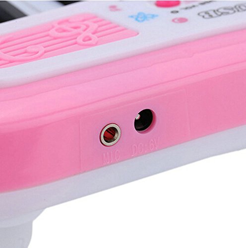 POWERED BY: AA batteries (not included), or DC power socket Adapter (included). / The microphone on the keyboard can be removed, and please note that the microphone cannot amplify sounds. / Learning tool for your child, helps develop musicality in early age, learn keyboard in fun environment. / Packed in carton box; Package Content: 1 x 37-Key Multi-function Piano Toy with Microphone ,DC power socket Adapter, Keys Stickers