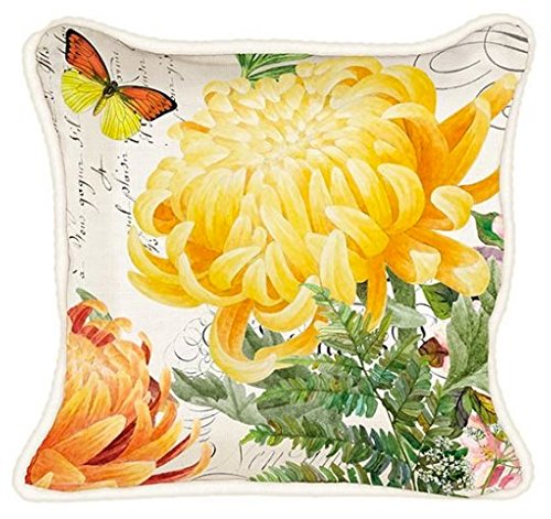 These charming printed square throw pillows are the perfect way to refresh a room. They are trimmed with piping and filled with hypoallergenic. Design on both sides with hidden zipper for easy closure. Covers are 100% cotton and made in the USA. Hand wash with warm water. Hypoallergenic 100% polyester synthetic down inserts. Michel displays creativity and attention to detail in all their products. Refresh every room of the house with the vivid colors, lively patterns and crisp, sweet scents of all their collections.Feature