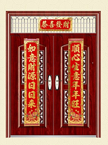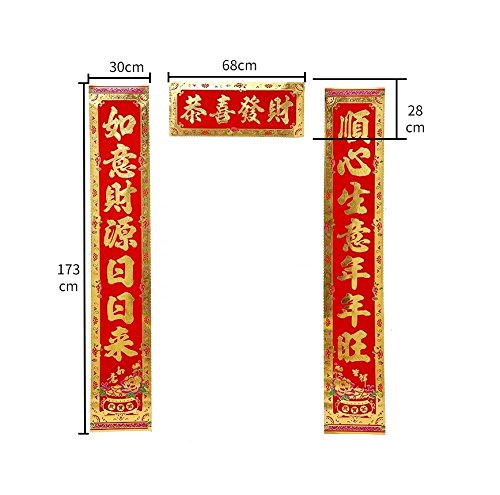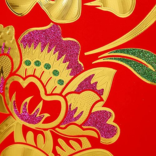 -. Feature : Dimension : each couplet about 173*30cm/68*11.8", and the top scroll about 68*28cm/26.7*11", and package included 2pcs of long couplets with a top scroll / This set is delicate and durable and they are made from high quality paper flocking with embossed delicate poney flowers patterns and hot stamped gold Chinese calligraphy words / It can be great decoration for home, office, restaurants, supermarket, store or any other places / This Chinese SP.R.Ing Festival Decorative Gift Kit is great as a present for friends or family / You can stick it on the doorside with the adhesive type which would be easy to take them down after SP.R.Ing Festival