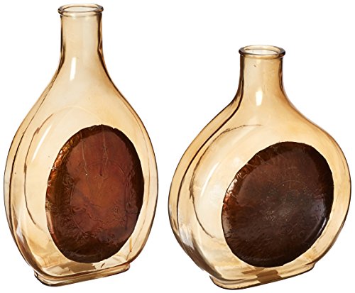 - Set of two handcrafted decor bottles in amber glass