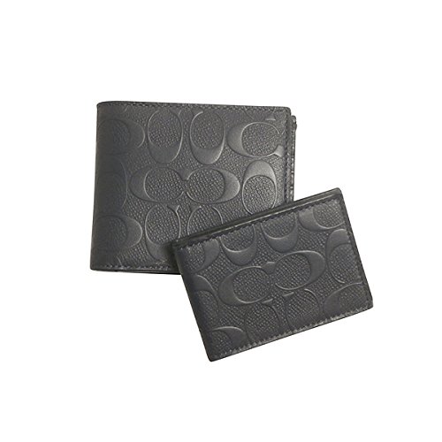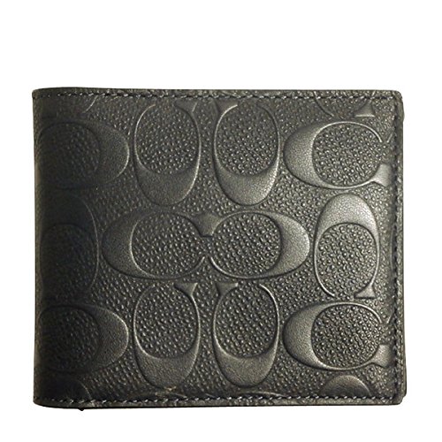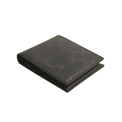 -. Title : 小物 定期入れ パスケース アウトレット シグネチャー クロスグレイン レザー コンパクト ID ウォレット 折り財布 F75371 BLK ブラック COACH メンズ レディース