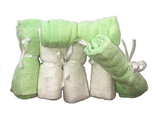 NEUTRAL COLORS - Each pack includes 3 green and 3 white washcloths. Perfect for boys, girls, and baby shower/registry gifting.