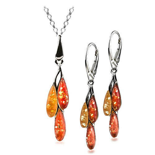 Size of set Earrings L -1.9inch H - 0.16inch W- 0.32inch Size Pendant L -1.6inch H - 0.16inch W- 0.35inch. Most of our amber found in Baltic sea area. Baltic sea considered to have biggest deposits of amber and quality of gemstone in this region is better than in any other location. Besides Baltic region there are large deposits of amber in Dominican republic, Columbia and Africa.Feature