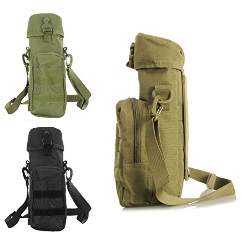 Tactical Bag,Bienna Military Water Bottle Bag w/ Small Pocket & Adjustable Shoulder Strap [Thermal Insulation] [Waterproof] Nylon Molle Gear Zipper Waist Pouch Holder Outdoors Travel for Men Women